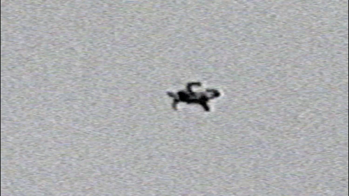 The tide is out. We watch a person faceless, nameless at extreme distance. The camera has tried to create a sense of intimacy, to give us more information with its zoom but failed. It's images warp, we're left with silhouettes which conceal the subjects age and the details of their appearance. The water becomes something else, it rises like a wall instead of laying out into the horizon. It's shimmer has become a field of pixels.
